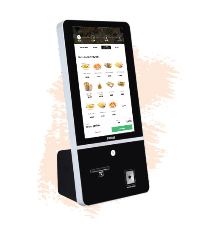 Kioski de balcão com 22’’ para atendimento automatizado integrado com o software Zone Soft. Neste equipamento é possível incluir TPA e suporte respetivo com um acréscimo de valor